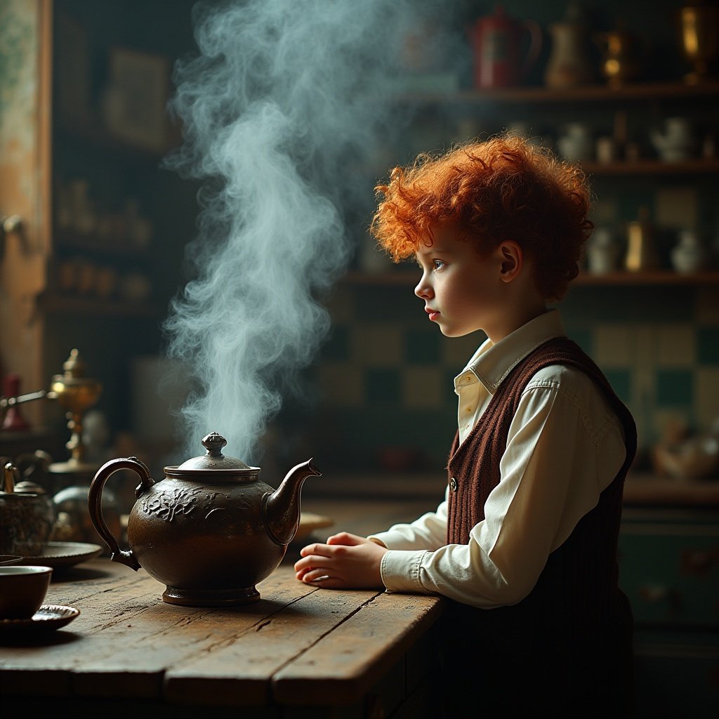 Mr. Farrow führte Theo in die Küche – das Herz des Hauses. Dort stand eine silberne Teekanne auf einem Sockel. Sie zischte leise, obwohl kein Feuer darunter brannte.