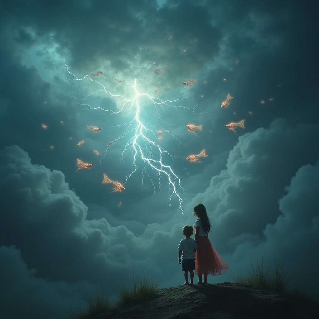 Ein Gewitter zog auf – gewaltig, grollend, wie ein Orchester aus Trommeln und Trompeten. Tariq stand auf dem Dach, als plötzlich ein Lichtstrahl ihn traf.